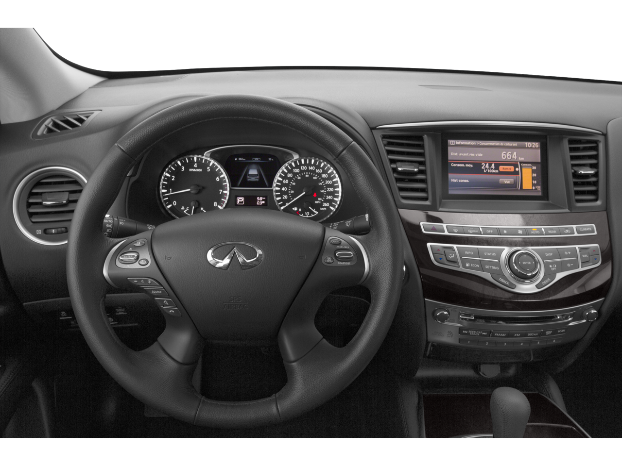 2-Way Driver's Seat Power Lumbar Support, Around View Monitor w/Front & Rear Sonar System, Dual Occupant Memory System, Enhanced Intelligent Key Memory, Entry & Exit Assist, Heated Front Seats, Heated Steering Wheel, INFINITI Navigation System, INFINITI Voice Recognition, Leather-Appointed Seats, Outside Mirrors w/Reverse Tilt-Down Feature, Premium Package, Premium Plus Package, Radio: AM/FM/CD/DVD w/MP3 Playback Capability, Rain-Sensing Front Windshield Wipers, Remote Engine Start, Single In-Dash CD Player, 18 5-Spoke Aluminum Alloy Wheels, 3rd row seats: bench, 4-Wheel Disc Brakes, 5.17 Axle Ratio, 6 Speakers, ABS brakes, Activation Disclaimer, Air Conditioning, Alloy wheels, AM/FM radio: SiriusXM, AM/FM/CD/MP3 Audio System, Auto-dimming Rear-View mirror, Automatic temperature control, Bodyside moldings, Brake assist, Bumpers: body-color, CD player, Delay-off headlights, Driver door bin, Driver vanity mirror, Dual front impact airbags, Dual front side impact airbags, Electronic Stability Control, Floor Mats, Four wheel independent suspension, Front anti-roll bar, Front Bucket Seats, Front Center Armrest w/Storage, Front dual zone A/C, Front fog lights, Front reading lights, Fully automatic headlights, Garage door transmitter, Heated door mirrors, Heated front seats, High intensity discharge headlights: Bi-Xenon, Illuminated entry, Illuminated Kick Plates, Illuminated Kick Plates (PIO), Leather Shift Knob, Leather steering wheel, Literature Kit, Low tire pressure warning, Occupant sensing airbag, Outside temperature display, Overhead airbag, Overhead console, Panic alarm, Passenger door bin, Passenger vanity mirror, Power door mirrors, Power driver seat, Power Liftgate, Power moonroof, Power passenger seat, Power steering, Power windows, Radio data system, Rear air conditioning, Rear anti-roll bar, Rear Bumper Protector, Rear reading lights, Rear seat center armrest, Rear window defroster, Rear window wiper, Reclining 3rd row seat, Remote keyless entry, Roof Rails, Security system, Special Paint - Pearl White, Speed control, Speed-sensing steering, Speed-Sensitive Wipers, Splash Guards (Color-Matched Set of 4), Split folding rear seat, Spoiler, Steering wheel mounted audio controls, Tachometer, Telescoping steering wheel, Tilt steering wheel, Traction control, Trip computer, Variably intermittent wipers, **LOCAL TRADE**, **Bluetooth®**, **CLEAN CARFAX, NO ACCIDENTS**, **HEATED SEATS**, **POWER SEAT**, **LEATHER SEATS**, **AWD**, **AS-IS**, **BARGIN ROW**, 2-Way Driver's Seat Power Lumbar Support, Around View Monitor w/Front & Rear Sonar System, Dual Occupant Memory System, Enhanced Intelligent Key Memory, Entry & Exit Assist, Heated Front Seats, Heated Steering Wheel, INFINITI Navigation System, INFINITI Voice Recognition, Leather-Appointed Seats, Outside Mirrors w/Reverse Tilt-Down Feature, Premium Package, Premium Plus Package, Radio: AM/FM/CD/DVD w/MP3 Playback Capability, Rain-Sensing Front Windshield Wipers, Remote Engine Start, Single In-Dash CD Player.