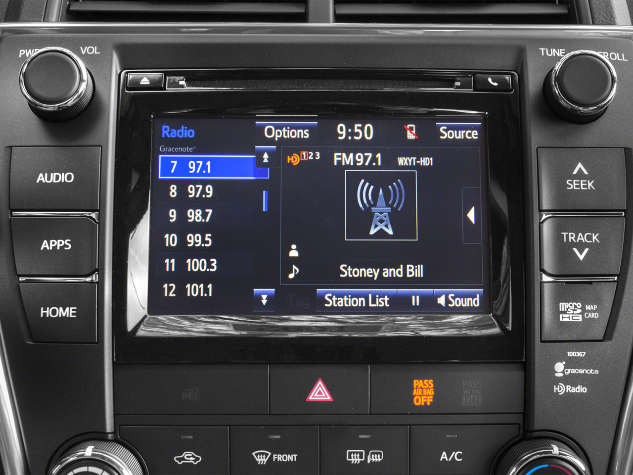 - Radio: Entune Audio -inc: Entune multimedia bundle, 6.1" touch-screen display, AM/FM CD player, MP3/WMA playback capability, 6 speakers, auxiliary audio jack, USB 2.0 port w/iPod connectivity and control, hands-free phone capability, phone book access, advanced voice recognition, SIRI Eyes Free and music streaming via Bluetooth® wireless technology