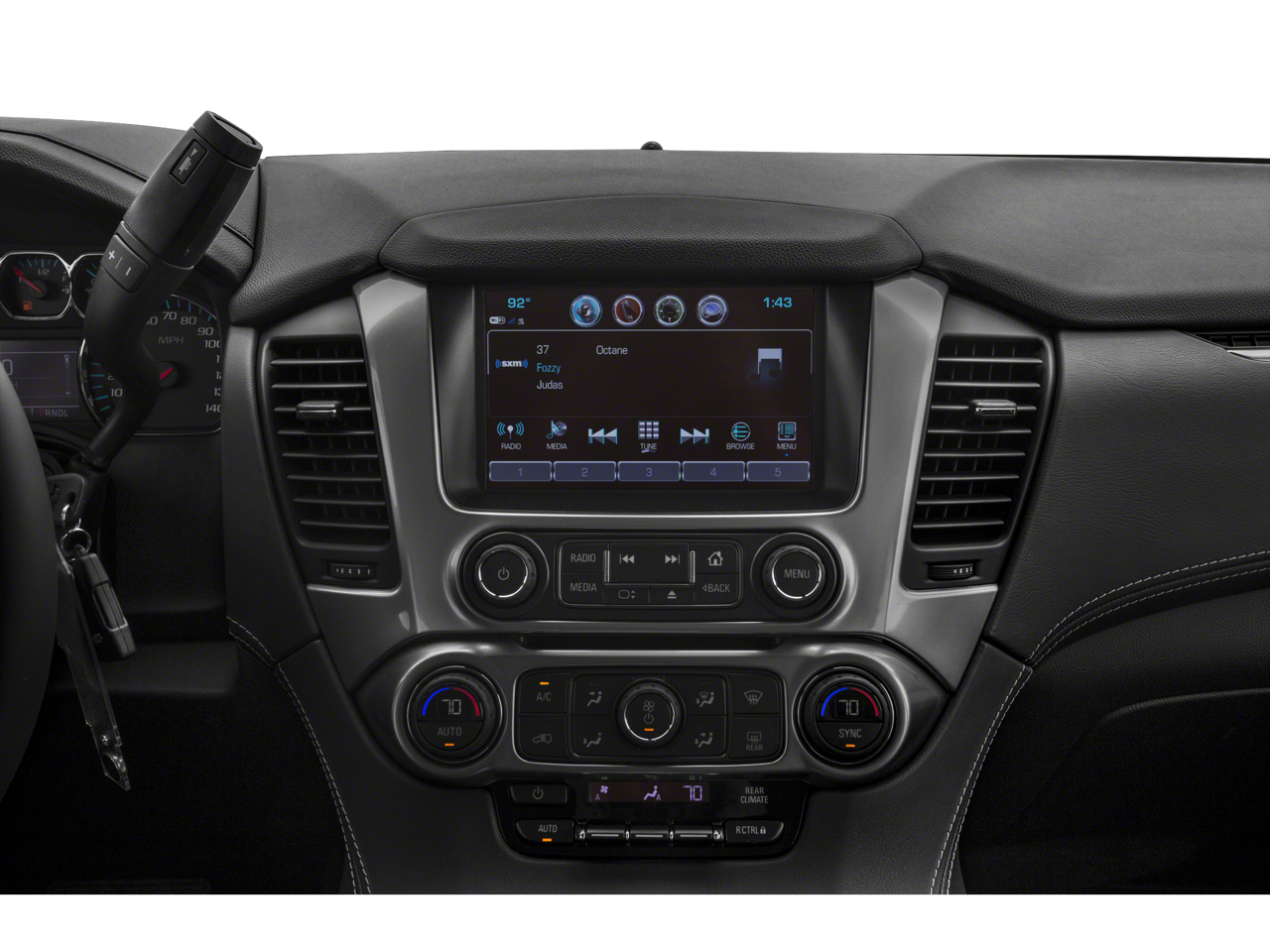 - Audio system, Chevrolet MyLink Radio with 8" diagonal color touch-screen AM/FM stereo with seek-and-scan and digital clock, includes Bluetooth® streaming audio for music and select phones; voice-activated technology for radio and phone; and Shop with the ability to browse, select and install apps to your vehicle. You can customize your content with audio, weather and more; featuring Apple CarPlay and Android Auto capability for compatible phone; 5 USB ports and 1 auxiliary jack (Includes 2 USB ports when (AZ3) Split-bench front seat is ordered.)