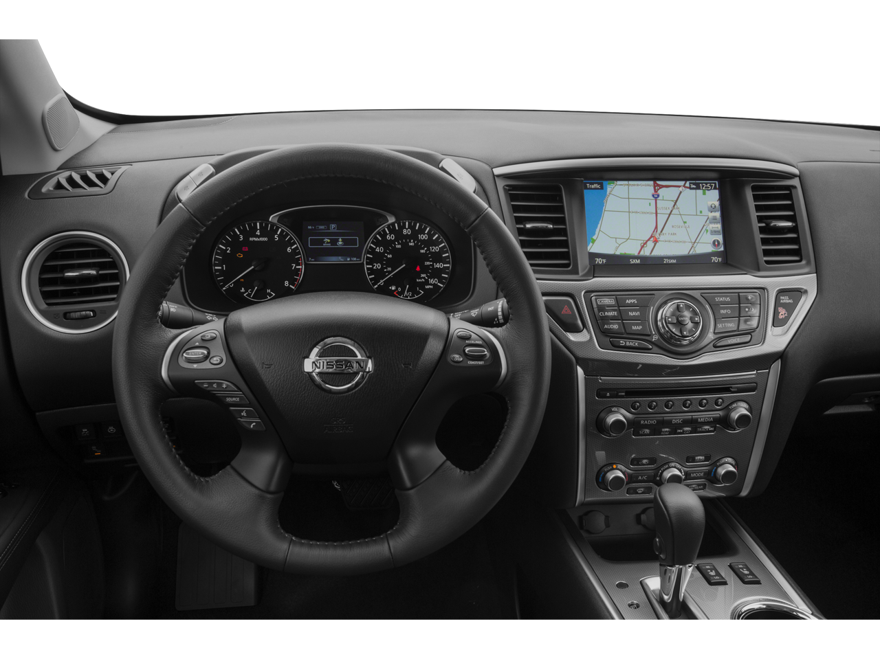 At the heart of the Pathfinder SL is the intuitive NissanConnect infotainment system, featuring a large touchscreen display, navigation, and seamless smartphone integration. Stay connected and entertained on the go with the available SiriusXM Traffic and 6-speaker audio system.