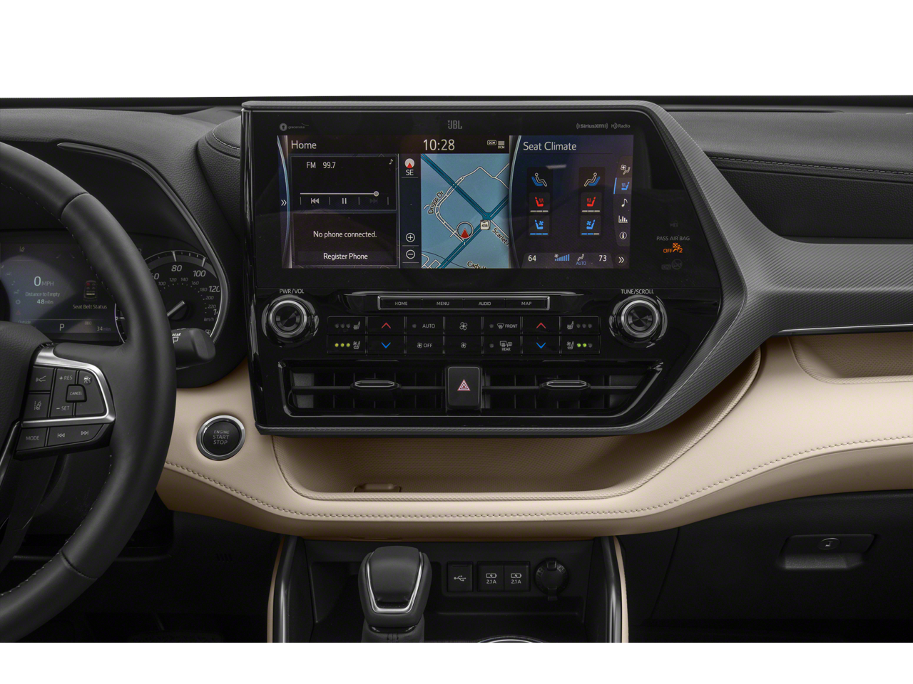 - Radio: Premium Audio w/JBL Clari-Fi -inc: 11 speakers, subwoofer, amplifier, 12.3" touch-screen, HD Radio, USB media port, hands-free phone capability, dynamic navigation w/up to 3-year trial, dynamic POI search, dynamic voice recognition and music streaming via Bluetooth® wireless technology, Android Auto, Apple CarPlay and Amazon Alexa compatible, SiriusXM w/3-month All Access trial, Connected Services - Safety Connect w/1-year trial, Service Connect w/10-year trial, Remote Connect w/1-year trial, Wi-Fi Connect w/up to 2GB within 3-month trial and Destination Assist w/1-year trial, See Toyota.com/audio-multimedia for details