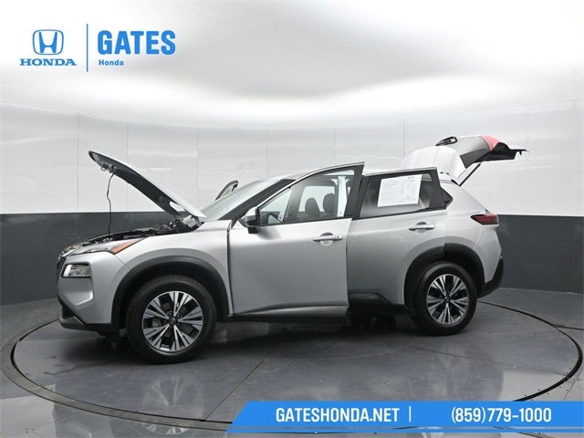 Rogue SV, 4D Sport Utility, 1.5L I3 Turbocharged DOHC 12V LEV3-ULEV50 201hp, CVT with Xtronic, AWD, Brilliant Silver Metallic, Charcoal Cloth, 18 Aluminum Alloy Wheels, 4-Wheel Disc Brakes, 5.604 Axle Ratio, 6 Speakers, ABS brakes, Air Conditioning, Alloy wheels, AM/FM Radio, AM/FM radio: SiriusXM, Auto High-beam Headlights, Automatic temperature control, Brake assist, Bumpers: body-color, Cloth Seat Trim, Delay-off headlights, Driver door bin, Driver vanity mirror, Dual front impact airbags, Dual front side impact airbags, Electronic Stability Control, Emergency communication system: NissanConnect Services, First Aid Kit, Floor Mats w/1-Piece Cargo Area Protector, Four wheel independent suspension, Front anti-roll bar, Front Bucket Seats, Front Center Armrest, Front dual zone A/C, Front reading lights, Fully automatic headlights, Heated door mirrors, Illuminated entry, Knee airbag, Low tire pressure warning, NissanConnect featuring Apple CarPlay and Android Auto, Occupant sensing airbag, Outside temperature display, Overhead airbag, Overhead console, Panic alarm, Passenger door bin, Passenger vanity mirror, Power door mirrors, Power driver seat, Power steering, Power windows, Radio data system, Rear anti-roll bar, Rear Parking Sensors, Rear seat center armrest, Rear side impact airbag, Rear window defroster, Rear window wiper, Remote keyless entry, Speed control, Speed-Sensitive Wipers, Split folding rear seat, Spoiler, Steering wheel mounted audio controls, Tachometer, Telescoping steering wheel, Tilt steering wheel, Traction control, Trip computer, Variably intermittent wipers.