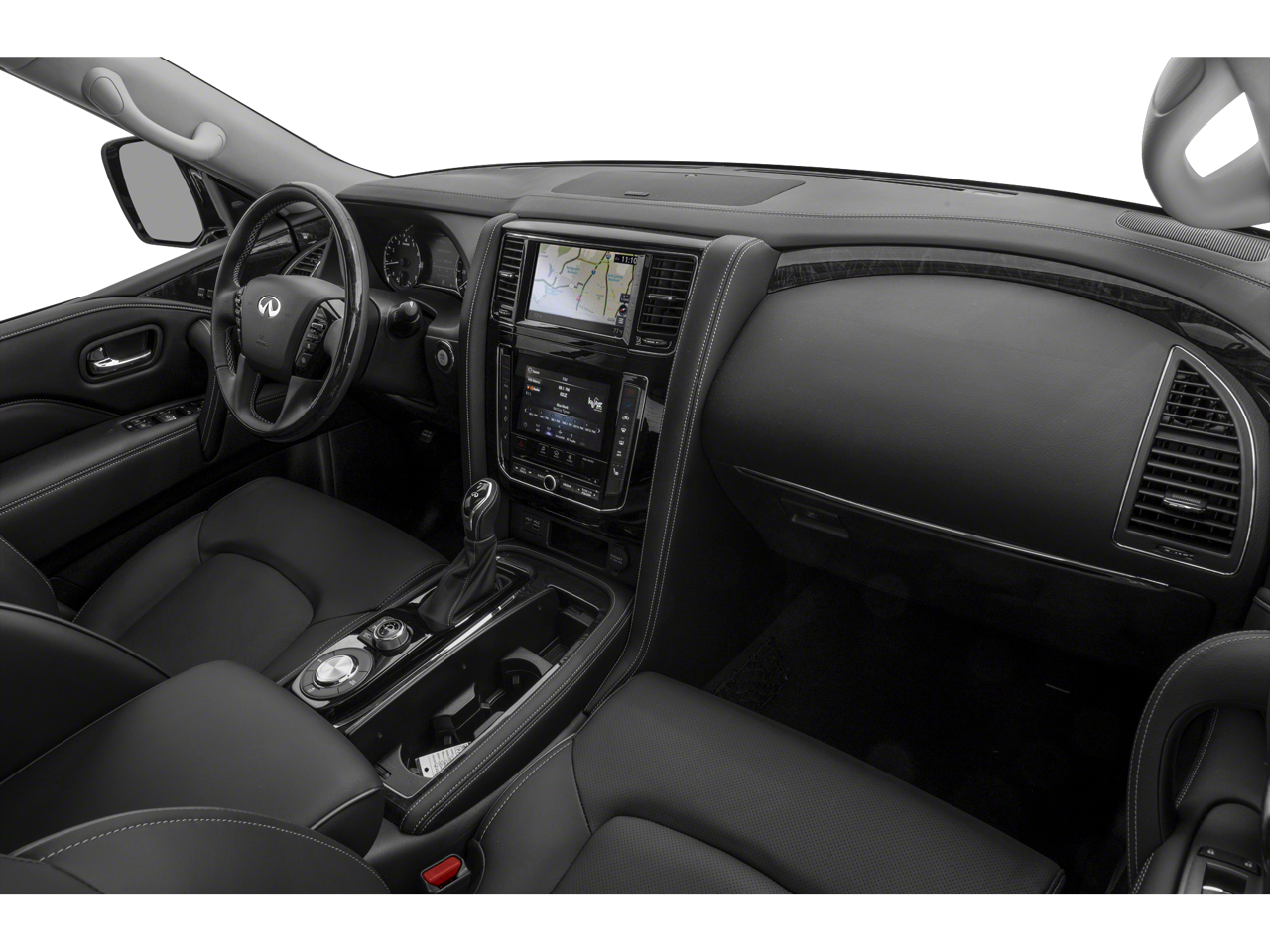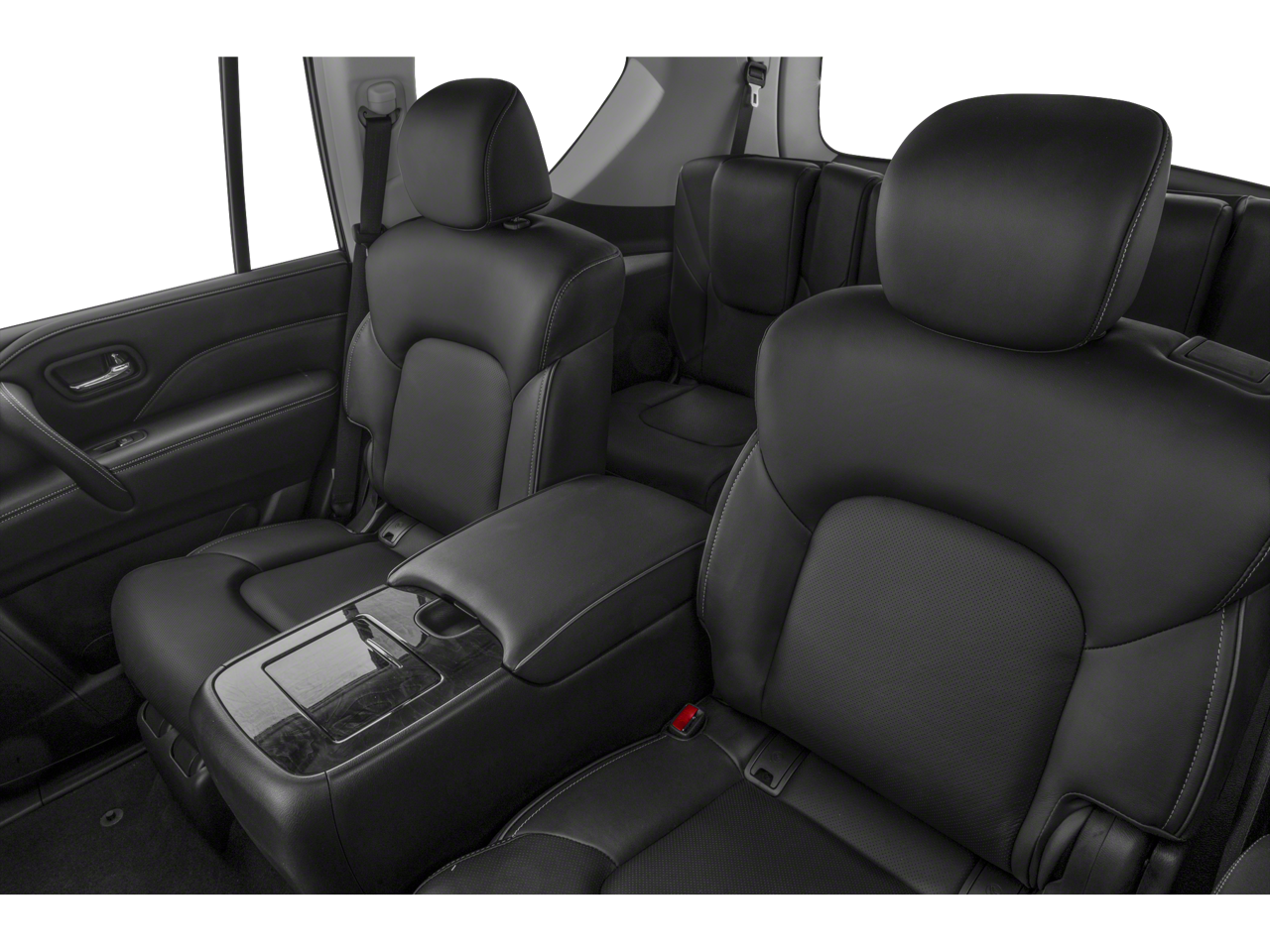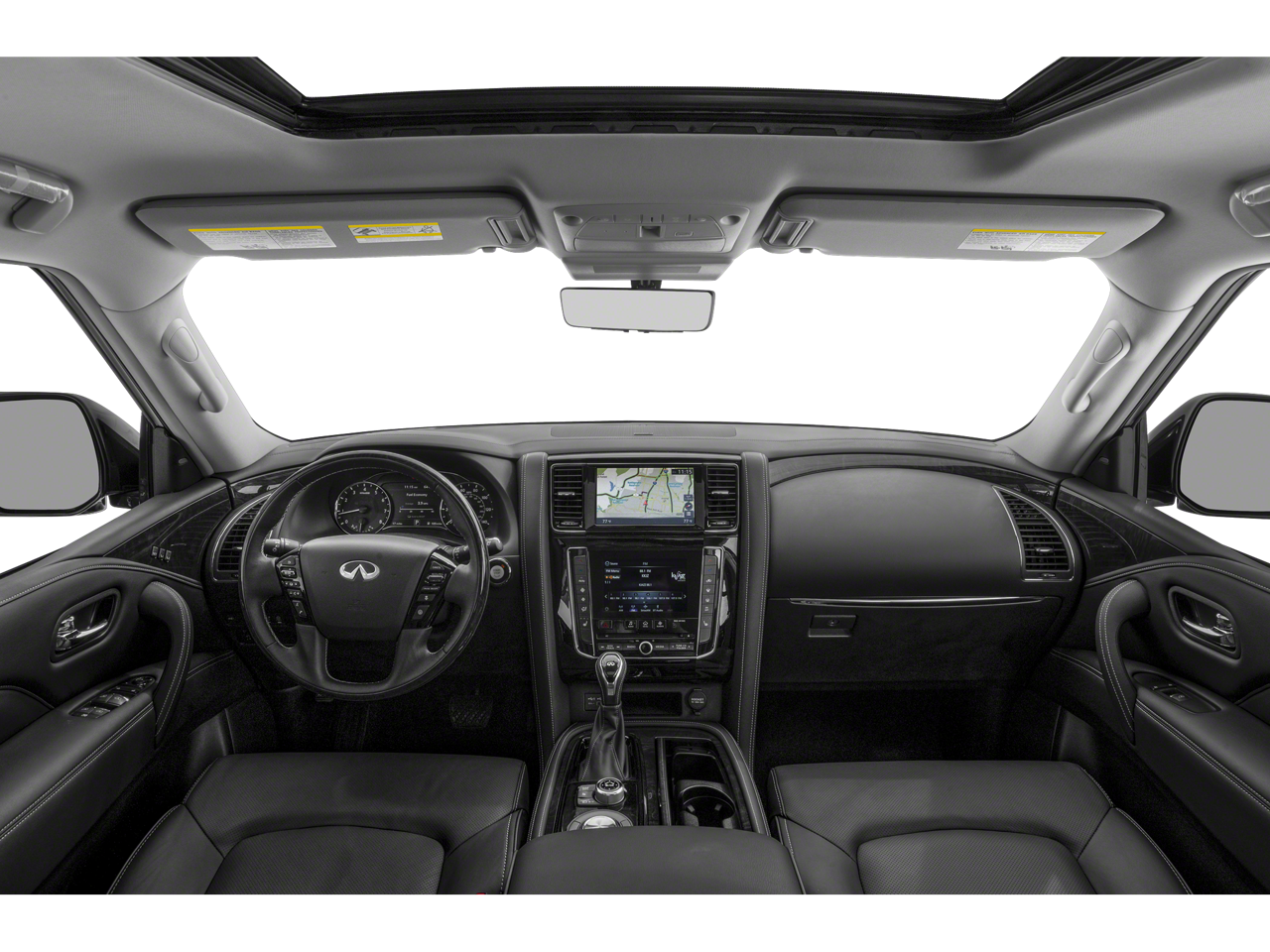 **SERVICED HERE**, **BACKUP CAMERA**, **LEATHER SEATS**, **Bluetooth®**, **CARFAX ONE OWNER**, **CARFAX NO ACCIDENTS**, **POWER SEAT**, **MOONROOF**, **THIRD ROW SEAT**, **4WD**, **BLIND SPOT MONITOR**, **LANE ASSIST**, Navigation system: INFINITI InTouch Navigation, 13 Speakers, 2.937 Axle Ratio, 20 Aluminum Alloy Wheels, 3rd row seats: bench, 4-Wheel Disc Brakes, ABS brakes, Air Conditioning, Alloy wheels, AM/FM radio: SiriusXM, Anti-whiplash front head restraints, Apple CarPlay/Android Auto, Auto High-beam Headlights, Auto tilt-away steering wheel, Auto-dimming door mirrors, Auto-dimming Rear-View mirror, Auto-leveling suspension, Automatic temperature control, Brake assist, Bumpers: body-color, Compass, Delay-off headlights, Driver door bin, Driver vanity mirror, Dual front impact airbags, Dual front side impact airbags, Electronic Stability Control, Emergency communication system: INFINITI InTouch, Four wheel independent suspension, Front anti-roll bar, Front Bucket Seats, Front Center Armrest, Front dual zone A/C, Front fog lights, Front reading lights, Fully automatic headlights, Garage door transmitter: HomeLink, Heated door mirrors, Heated Front Bucket Seats, Heated front seats, Heated steering wheel, Illuminated entry, Leather Shift Knob, Leather steering wheel, Leather-Appointed Seats, Literature Kit, Low tire pressure warning, Memory seat, Occupant sensing airbag, Outside temperature display, Overhead airbag, Overhead console, Panic alarm, Passenger door bin, Passenger vanity mirror, Power door mirrors, Power driver seat, Power Liftgate, Power moonroof, Power passenger seat, Power steering, Power windows, Radio data system, Radio: Bose Premium Audio System w/13 Speakers, Rain sensing wipers, Rear air conditioning, Rear anti-roll bar, Rear reading lights, Rear seat center armrest, Rear window defroster, Rear window wiper, Reclining 3rd row seat, Remote keyless entry, Security system, Speed control, Speed-sensing steering, Split folding rear seat, Spoiler, Steering wheel memory, Steering wheel mounted audio controls, Tachometer, Telescoping steering wheel, Tilt steering wheel, Traction control, Trip computer, Turn signal indicator mirrors, Variably intermittent wipers, Voltmeter, Navigation system: INFINITI InTouch Navigation.