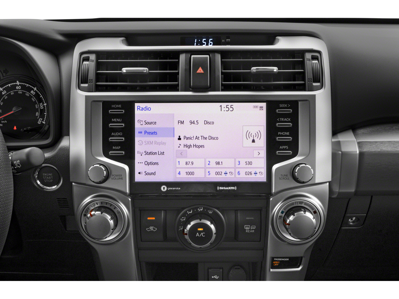 4WD, Graphite Artificial Leather, 17 6-Spoke Alloy Wheels, 3.727 Axle Ratio, 4-Wheel Disc Brakes, 8 Speakers, ABS brakes, Air Conditioning, All Weather Floor Liner & Cargo Tray (TMS), Alloy wheels, AM/FM radio: SiriusXM, Anti-whiplash front head restraints, Apple CarPlay/Android Auto, Auto High-beam Headlights, Auto-dimming Rear-View mirror, Brake assist, Bumpers: body-color, Compass, Driver door bin, Driver vanity mirror, Dual front impact airbags, Dual front side impact airbags, Electronic Stability Control, Emergency communication system: Safety Connect (1-year trial), Exterior Parking Camera Rear, Front anti-roll bar, Front Bucket Seats, Front Center Armrest, Front fog lights, Front reading lights, Front wheel independent suspension, Garage Door Opener, Garage door transmitter: HomeLink, Heated door mirrors, Heated Front Bucket Seats, Heated front seats, Heated Outside Rear-View Mirrors, Heated steering wheel, Illuminated entry, Knee airbag, Leather Shift Knob, Leather steering wheel, Low tire pressure warning, Moonroof Package, Moonroof w/Tilt Up & Slide, Navigation System, Occupant sensing airbag, Outside temperature display, Overhead airbag, Overhead console, Panic alarm, Passenger door bin, Passenger vanity mirror, Power door mirrors, Power driver seat, Power passenger seat, Power steering, Power windows, Quick Charge Cable (TMS), Radio: Premium Audio, Rear anti-roll bar, Rear seat center armrest, Rear window defroster, Rear window wiper, Remote keyless entry, Roof Rack Cross Bars (TMS), Running Boards (TMS), Security system, SofTex Seat Trim, Speed control, Speed-sensing steering, Split folding rear seat, Spoiler, SR5 Premium Package, Steering wheel mounted audio controls, Tachometer, Telescoping steering wheel, Tilt steering wheel, Traction control, Trip computer, Turn signal indicator mirrors, Variably intermittent wipers, 4WD, Graphite Artificial Leather.