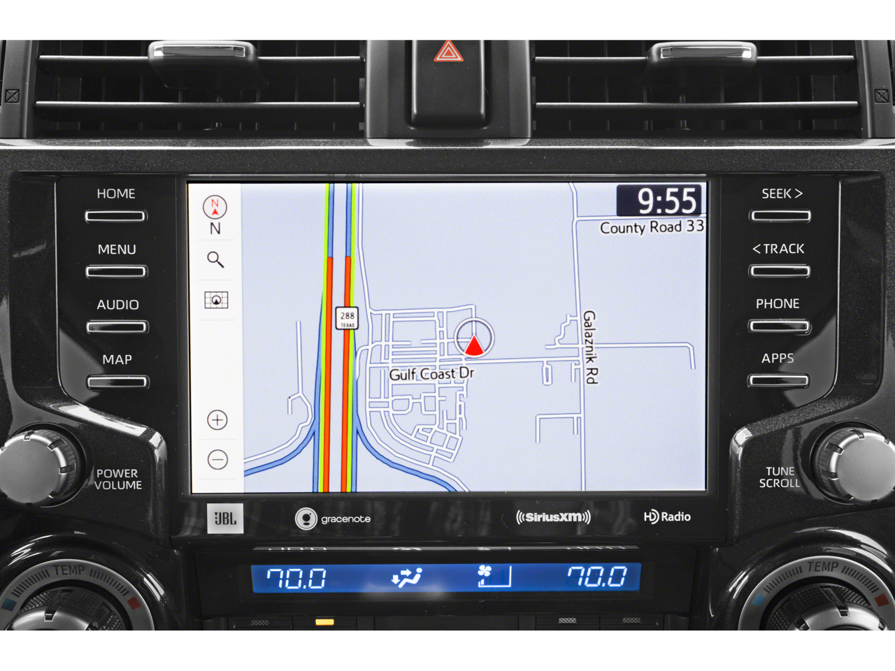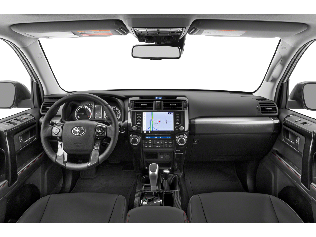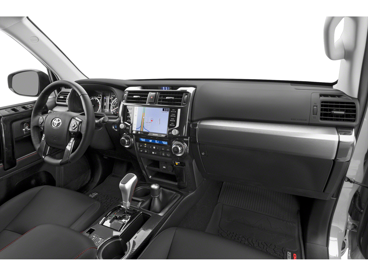 - Dual Zone Auto Climate Control, Garage Door Opener, Fox Shocks, Fog Lights, Heated Outside Rear-View Mirrors, TRD Pro Badging, TRD Pro Exhaust, Multi-Terrain Back Monitor, TRD Pro All Weather Floor Liner, TRD Shift Knob, Navigation System, Roof Rack, Moonroof w/Tilt Up & Slide