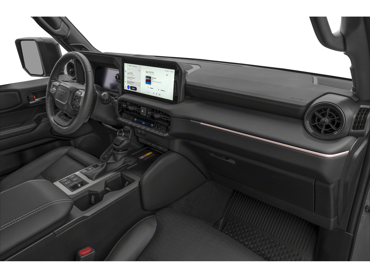 2.4L 4-Cylinder, Black Leather, 10 Speakers, 14-Speaker JBL Premium Sound System, 18 x 7.5J Alloy Wheels, 4-Wheel Disc Brakes, 8-Way Power Seats, ABS brakes, Air Conditioning, All Weather Cargo Mat (TMS), Alloy wheels, AM/FM radio: SiriusXM, Apple CarPlay/Android Auto, Auto High-beam Headlights, Auto tilt-away steering wheel, Auto-dimming Rear-View mirror, Automatic temperature control, Axle Ratio: TBD, Blind Spot Monitor w/Lane Change Assist, Brake assist, Compass, Delay-off headlights, Driver door bin, Driver vanity mirror, Dual front impact airbags, Dual front side impact airbags, Electronic Stability Control, Emergency communication system: Safety Connect (up to 10-year trial subscription), Entry Digital Key, Exterior Parking Camera Rear, Front anti-roll bar, Front Bucket Seats, Front Center Armrest, Front Cross Traffic Alert, Front dual zone A/C, Front fog lights, Front reading lights, Front wheel independent suspension, Fully automatic headlights, Garage door transmitter: HomeLink, Head-Up Display (HUD), Heated & Ventilated Front Seats, Heated door mirrors, Heated front seats, Heated steering wheel, Illuminated entry, Interior Rear View Mirror, Knee airbag, Lane Keeping System, Leather Seat Trim, Leather Shift Knob, Leather steering wheel, Low tire pressure warning, Navigation system: Drive Connect Cloud Navigation (1-year trial subscription), Occupant sensing airbag, Outside temperature display, Overhead airbag, Overhead console, Panic alarm, Passenger door bin, Passenger vanity mirror, Power door mirrors, Power driver seat, Power Liftgate, Power steering, Power windows, Pre-Collision System, Premium Package, Radio data system, Radio: Toyota Audio Multimedia System, Rain sensing wipers, Rear air conditioning, Rear anti-roll bar, Rear reading lights, Rear seat center armrest, Rear window defroster, Rear window wiper, Remote keyless entry, Security system, Side Step & Step Cover, SofTex Synthetic Leather Seat Trim, Speed control, Speed-sensing steering, Split folding rear seat, Spoiler, Steering wheel mounted audio controls, Sunroof & Moonroof, Telescoping steering wheel, Tilt steering wheel, Traction control, Trip computer, Turn signal indicator mirrors, Variably intermittent wipers, Ventilated front seats, Wheels: 20 x 7.5J Aluminum, Wireless Charger, 2.4L 4-Cylinder, Black Leather.
