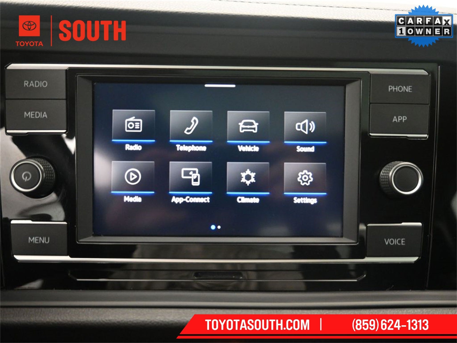 **APPLE CARPLAY**, **ANDROID AUTO**, Titan Black w/V-Tex Leatherette Seat Trim, Dual Front Reading Lights, Illuminated Vanity Mirrors, Overhead Storage Compartment, Panoramic Sunroof Package, Power Tilting & Sliding Panoramic Sunroof, 4 Speakers, 4-Wheel Disc Brakes, ABS brakes, Active Blind Spot Monitor, Air Conditioning, Alloy wheels, Auto-dimming Rear-View mirror, Automatic temperature control, Brake assist, Bumpers: body-color, Delay-off headlights, Driver door bin, Driver vanity mirror, Dual front impact airbags, Dual front side impact airbags, Electronic Stability Control, Emergency communication system: VW Car-Net Safe & Secure 5-year, Exterior Parking Camera Rear, Front anti-roll bar, Front Bucket Seats, Front Center Armrest, Front dual zone A/C, Front wheel independent suspension, Fully automatic headlights, Heated door mirrors, Heated Front Seats, Heated front seats, Illuminated entry, Leather Shift Knob, Leather steering wheel, Low tire pressure warning, Occupant sensing airbag, Outside temperature display, Overhead airbag, Overhead console, Panic alarm, Passenger door bin, Passenger vanity mirror, Power door mirrors, Power driver seat, Power steering, Power windows, Radio data system, Radio: MIB3 Composition Color w/6.5 Touchscreen, Rain sensing wipers, Rear anti-roll bar, Rear reading lights, Rear seat center armrest, Rear window defroster, Remote keyless entry, Speed control, Speed-sensing steering, Split folding rear seat, Steering wheel mounted audio controls, Tachometer, Telescoping steering wheel, Tilt steering wheel, Traction control, Trip computer, V-Tex Leatherette Seat Trim, Variably intermittent wipers, Wheels: 17 Twin 5-Spoke Silver Painted Alloy, **BACK UP CAMERA**, **Bluetooth®**, **CARFAX ONE OWNER**, **PANORAMIC MOONROOF**, Titan Black w/V-Tex Leatherette Seat Trim, Dual Front Reading Lights, Illuminated Vanity Mirrors, Overhead Storage Compartment, Panoramic Sunroof Package, Power Tilting & Sliding Panoramic Sunroof.