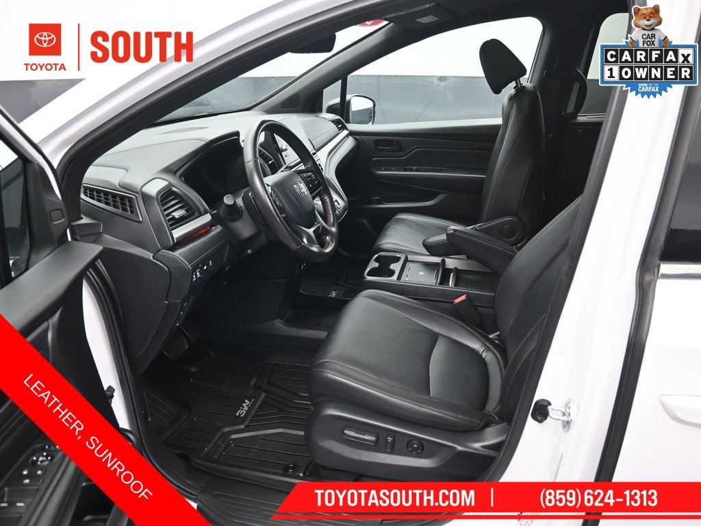 The spacious interior of this Odyssey is designed with your comfort in mind. Sink into the luxurious leather-trimmed seats, which are both heated and power-adjustable for the driver. The power moonroof allows you to let in natural light and fresh air, creating an airy, open cabin environment.