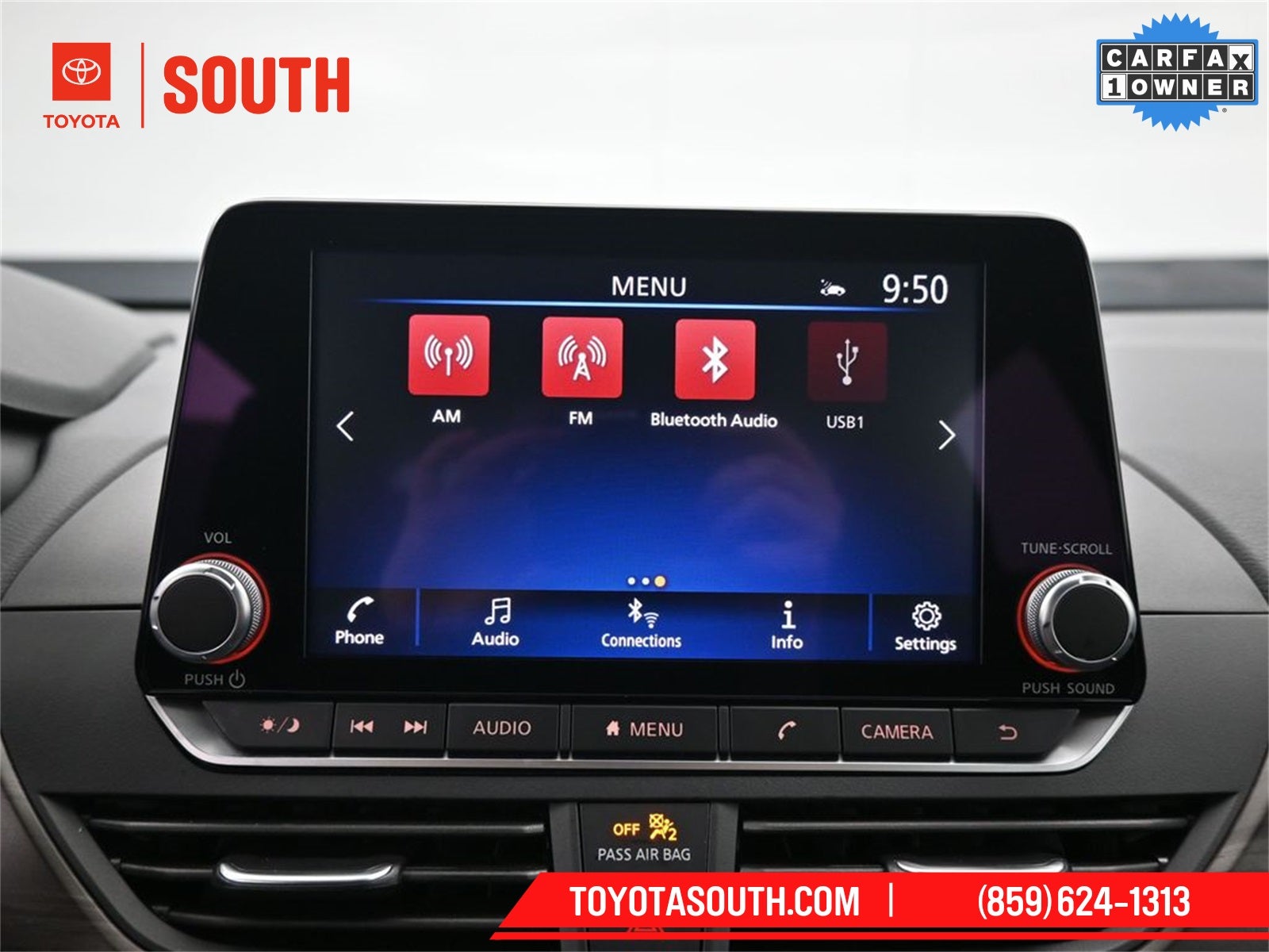 **APPLE CARPLAY**, **ANDROID AUTO**, CVT with Xtronic, 17 Machined Alloy Wheels, 4-Wheel Disc Brakes, 6 Speakers, ABS brakes, Air Conditioning, Alloy wheels, AM/FM radio: SiriusXM, Auto High-beam Headlights, Blind Spot Warning, Brake assist, Bumpers: body-color, Cloth Seat Trim, Delay-off headlights, Driver door bin, Driver vanity mirror, Dual front impact airbags, Dual front side impact airbags, Electronic Stability Control, Floor Mats/Trunk Mat/Hideaway Net, Four wheel independent suspension, Front anti-roll bar, Front Bucket Seats, Front Center Armrest, Front reading lights, Fully automatic headlights, Illuminated entry, Knee airbag, Low tire pressure warning, NissanConnect featuring Apple CarPlay and Android Auto, NissanConnect Services Powered by SiriusXM, Occupant sensing airbag, Outside temperature display, Overhead airbag, Overhead console, Panic alarm, Passenger door bin, Passenger vanity mirror, Power door mirrors, Power driver seat, Power steering, Power windows, Radio data system, Radio: AM/FM Audio System, Rear anti-roll bar, Rear Parking Sensors, Rear reading lights, Rear seat center armrest, Rear side impact airbag, Rear window defroster, Remote keyless entry, Security system, Speed control, Speed-sensing steering, Speed-Sensitive Wipers, Split folding rear seat, Steering wheel mounted audio controls, Tachometer, Telescoping steering wheel, Tilt steering wheel, Traction control, Trip computer, Variably intermittent wipers, **BACK UP CAMERA**, **LANE ASSIST**, **BLIND SPOT MONITOR**, **Bluetooth®**, **CARFAX ONE OWNER**, **POWER SEAT**, CVT with Xtronic.